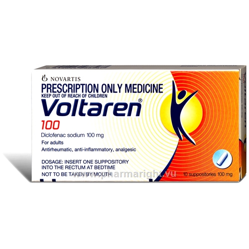 Voltaren suppositories 100mg are used as a topical treatment to relieve the pain and inflammation associated with a various form of chronic arthritis, including rheumatoid arthritis, juvenile rheumatoid arthritis, ankylosing spondylitis, osteoarthritis and spondylarthritis, to reduce pain, inflammation, tenderness, stiffness and swelling in the affected joints; also pain and inflammation associated with back pain, soft tissue injuries, such as sprains and strains that are due to trauma to the tendons, ligaments, muscles or joints. Voltaren suppositories 100 are also used to treat gout, which is a is a painful condition of the joints that is caused by build-up of uric acid in the blood (hyperuricaemia) and the formation of uric acid crystals which are deposited in the joints and tissues. Other conditions for which Voltaren suppositories are used to relieve pain and inflammation include painful menstrual cramps (dysmenorrhoea), migraine and severe painful inflammatory infections of the ear, nose or throat, such as ear infections (otitis) and following surgery, such as dental or orthopaedic surgery.