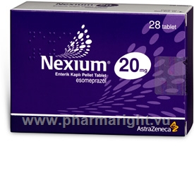 Nexium tablets 20mg contain the active ingredient esomeprazole, which is used to treat and prevent peptic ulcers in the stomach (gastric ulcers or damage to the stomach lining) and duodenum (duodenal ulcers or damage to the lining of the upper intestine), caused by excess secretion of gastric acid; and gastric ulcers caused by use of nonsteroidal anti-inflammatory drugs (NSAID). Nexium tablets 20mg are also used as combination therapy to treat and prevent gastric ulcers that are caused by infection of the stomach with the bacterium Helicobacter pylori, in conjunction with using antibiotics. Esomeprazole in Nexium tablets 20mg reduces acid secretion by parietal cells of the stomach wall, by blocking the action of the enzyme H+/K+-ATPase, which responsible for acid production. This action of esomeprazole in Nexium tablets 20mg reduces the acidity of the stomach contents, which reduces the acid damage to the stomach wall and allows ulcers that have already developed to heal.