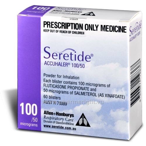Seretide Accuhaler 100/50 does not contain a high enough dose of the corticosteroid medication for severe asthma and should not be used as a “reliever” for asthma attack. Seretide Accuhaler 100/50 is also used to treat moderate to severe COPD who are using a beta-agonist (bronchodilator) but are still having symptoms. The combination of medications in Seretide Accuhaler 100/50 work together to provide better control of asthma to protect against symptoms, prevent exacerbations of asthma or COPD and improve lung function.