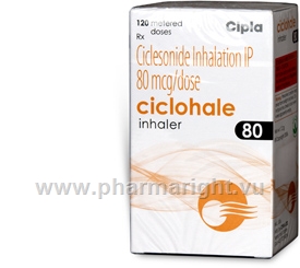 Ciclohale inhaler 80mcg contains the active ingredient ciclesonide, a corticosteroid and anti-inflammatory, used as an asthma prevention medication. Each Ciclohale inhaler 80mcg contains 120 metered doses. Ciclohale is available in two strengths, 80mcg and 160mcg.