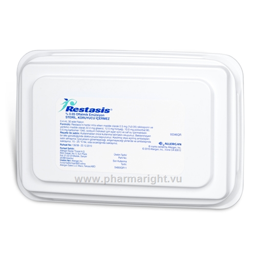 IMPORTANT: Restasis made by Allergan is sourced from Turkey. The packaging has Turkish writing on it and is different to the picture shown on our site. We supply an English Language leaflet for all Turkish products. Please do not order if this is unsuitable for your requirements.
